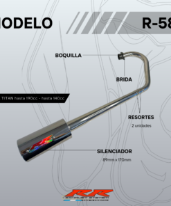 Escape RR modelo R58 para motores tipo Honda Titan 150cc