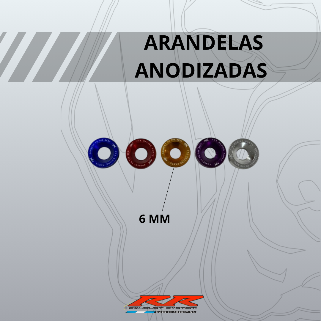 Arandelas anodizadas + tornillos inox x 10unidades (6mm).