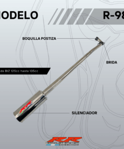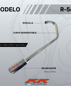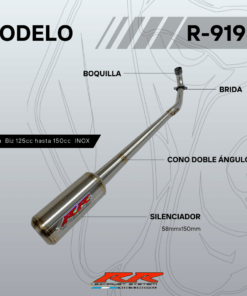 Curva de 38mm (caño común) + cono progresivo + silenciador de aluminio.