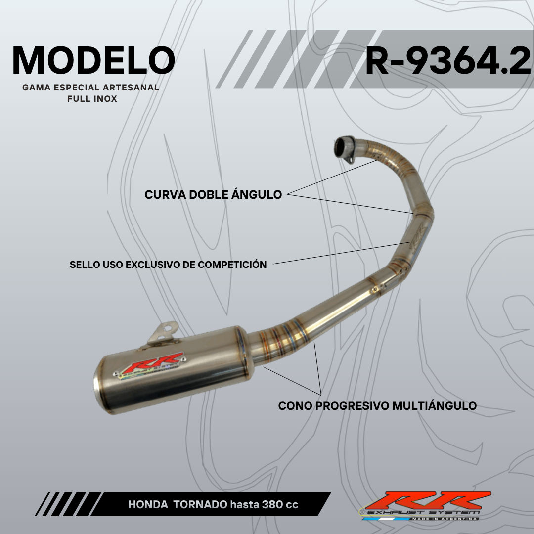 R-9364.2 es apto para motores tipo Honda Tornado 250cc hasta 350cc con nivel bajo/medio de preparación. (Salida del escape por debajo del motor).