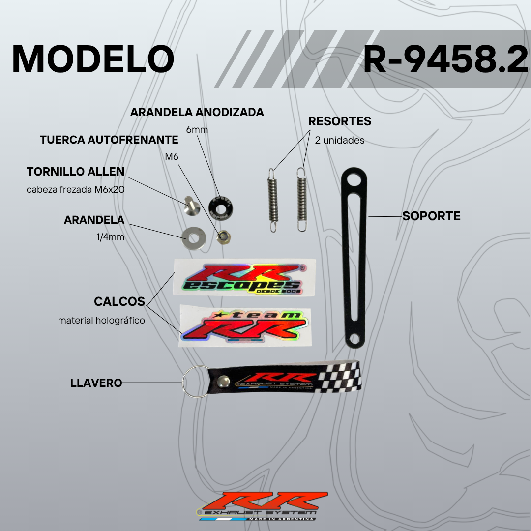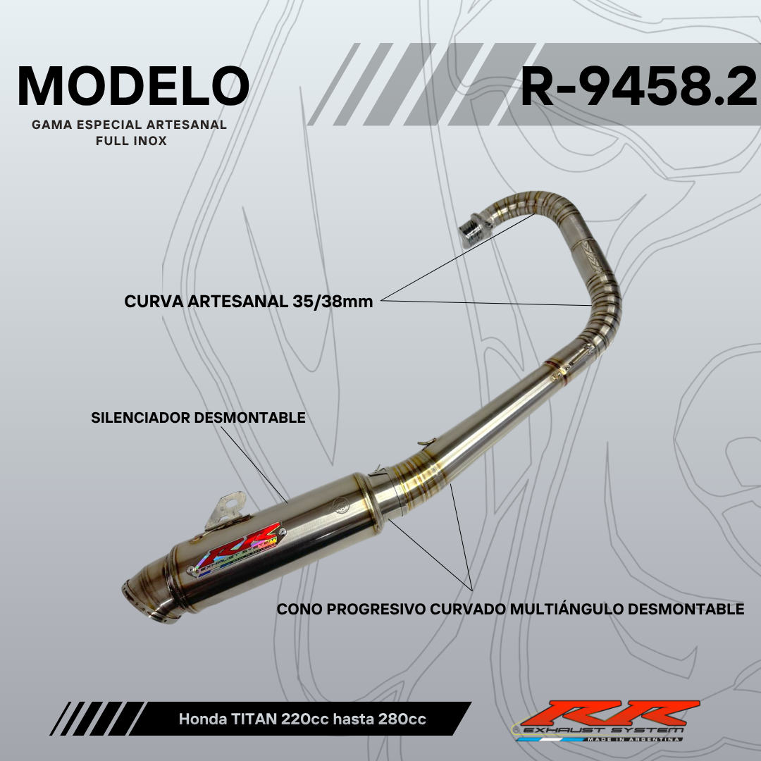 Compuesto por curva de doble diámetro (35mm-38mm) + cono multiángulo curvado + silenciador desmontable.