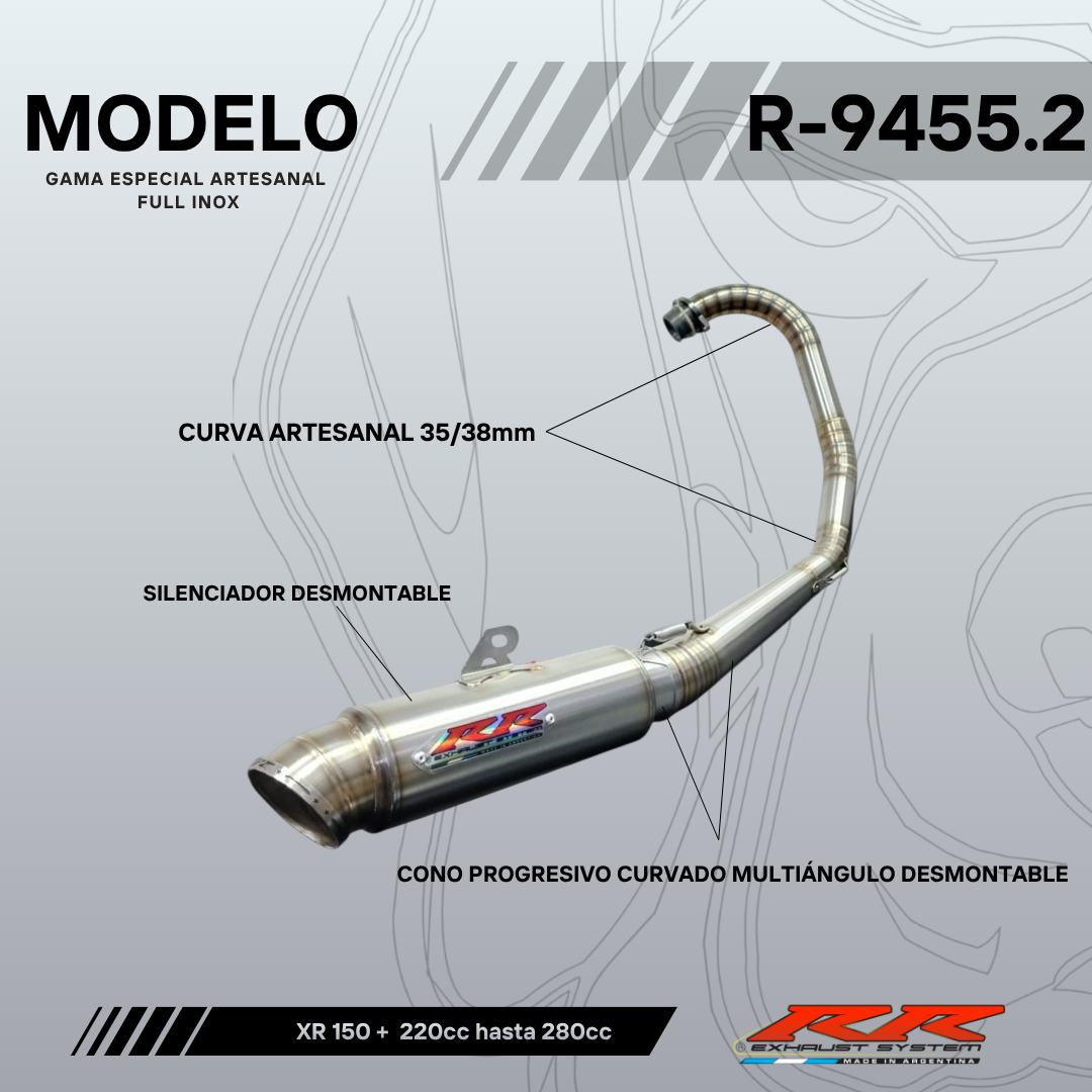 Modelo R-9455.2 fabricado completamente en ACERO INOXIDABLE DE ALTA CALIDAD para XR 150 L /XR 190 L – desde 190cc hasta 280cc.