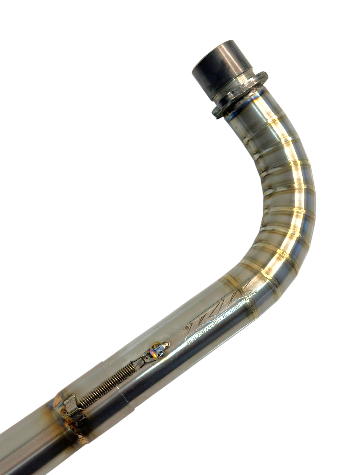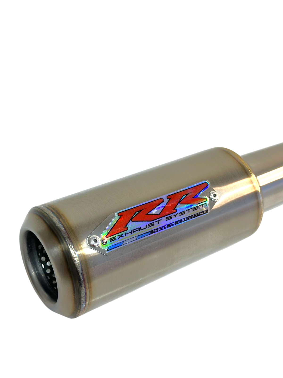 Compuesto por curva con boquilla soldada, cono progresivo + silenciador corto de carrera.